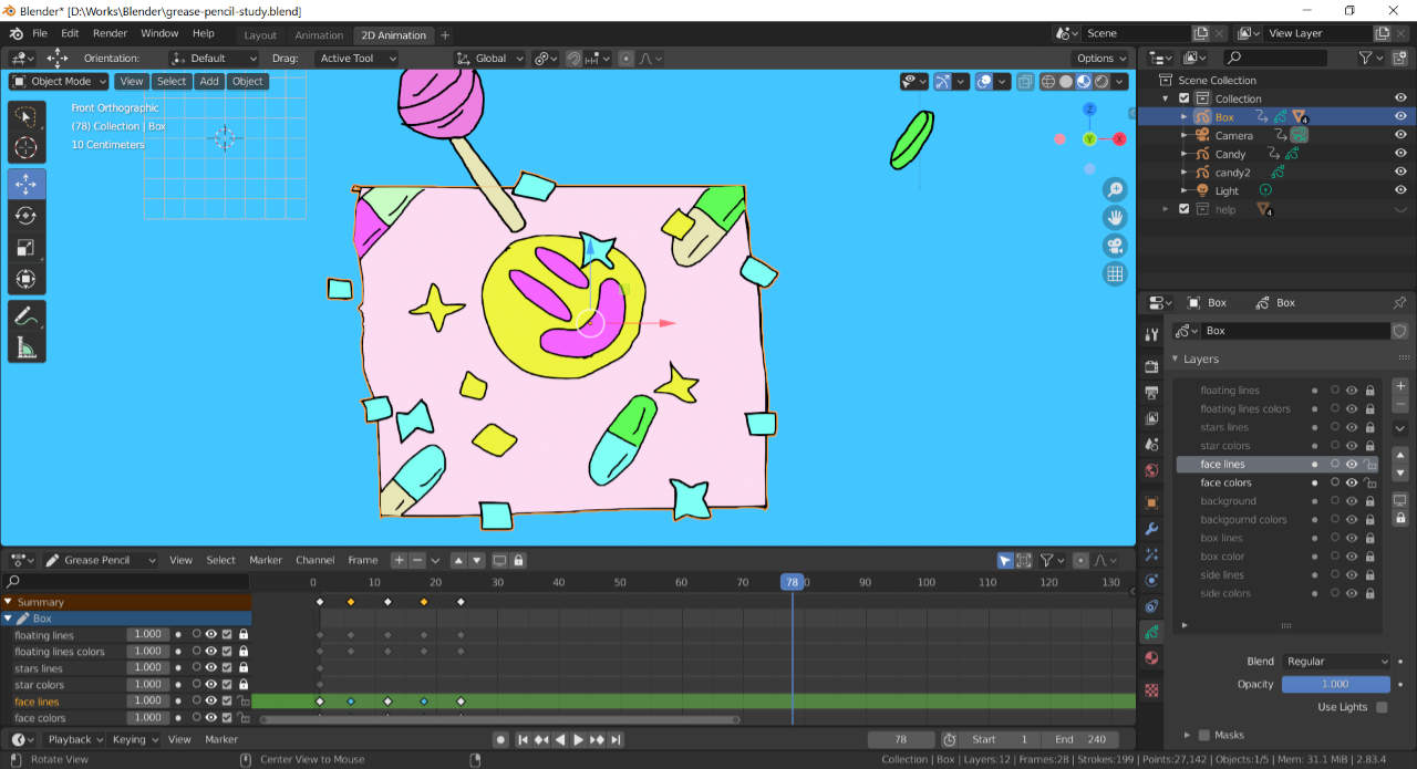 ちょっと2Dゲームのアニメーション作成とは関係ないが、BlenderのGrease Pencilを徹底的に使って2D/3Dのグラフィック作成に取り組んでみたいと思った。