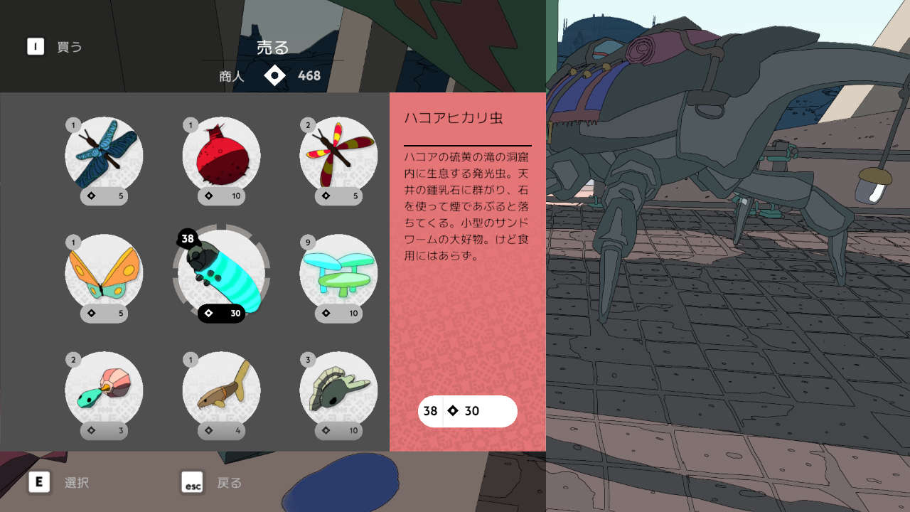ゲーム前半は鉄くずを集めて売れば良いですが、鉄くずはゲーム後半になると枯渇します。ゲーム後半で金策が必要な場合、「ヒカリ虫の洞窟」にいる「ハコアヒカリ虫」をたくさん採集して商人に売ると効率が良いです。1匹30で売却できます。