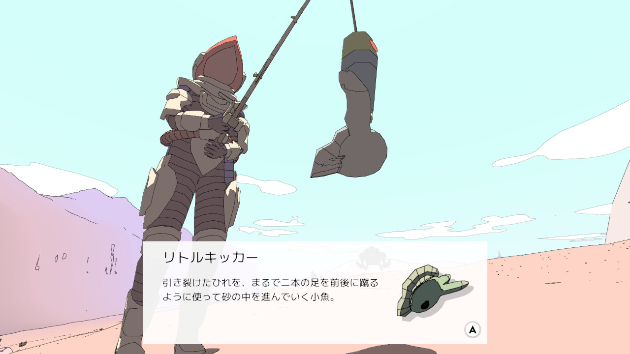 ストーリーにはあまり関係せず、やり込み要素が増えたアップデートと言えます。このゲームに釣りができるような海や湖ってあっただろうかと思いましたが、水中ではなく砂漠の砂の中にいる魚を釣るという設定を知り納得しました。