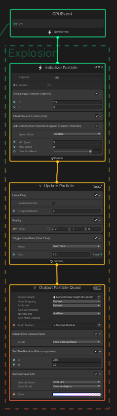以上で、花火を爆発させるパーティクルシステムのグラフ作成は完了である。( 3.7)