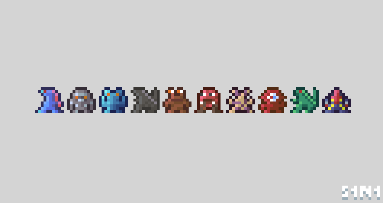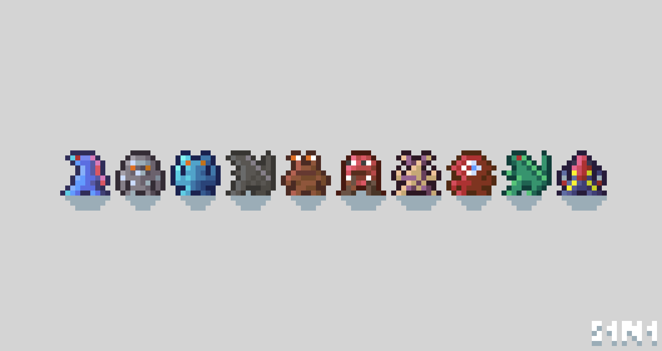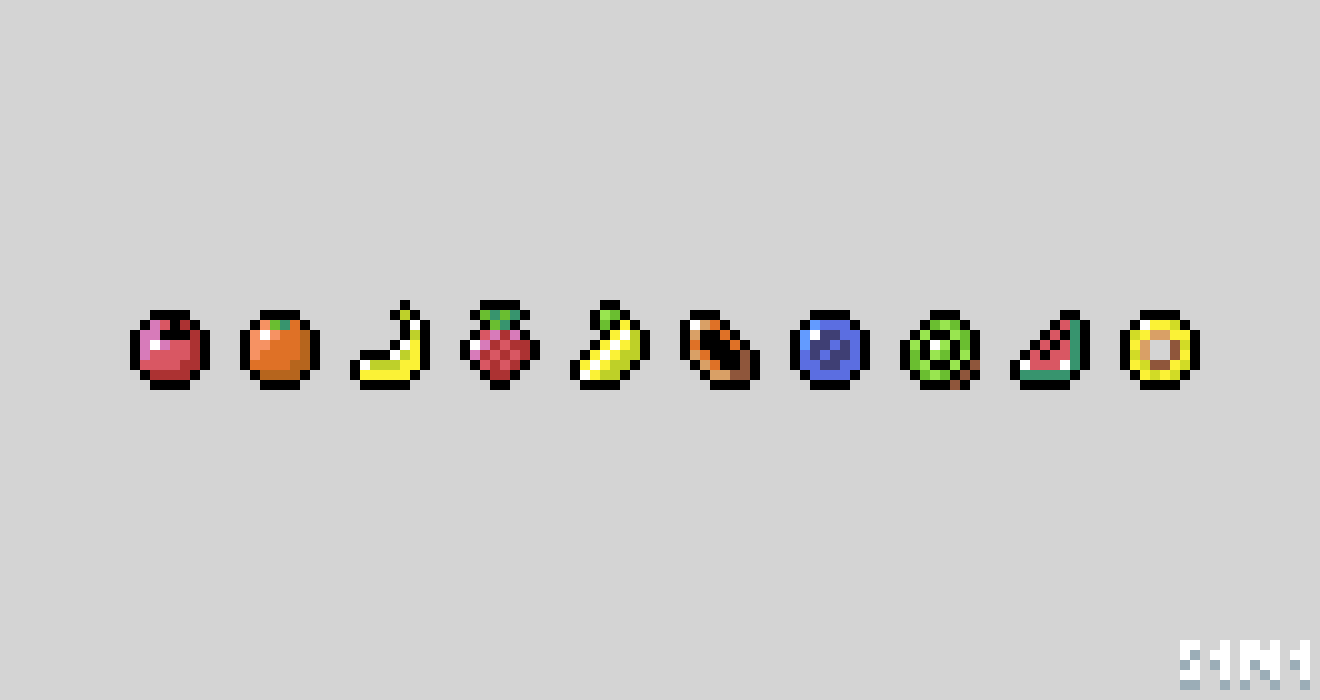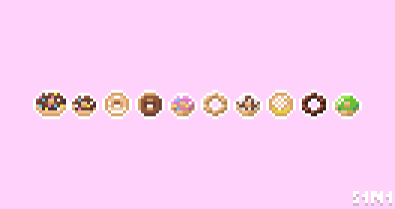 I posted only one type on Twitter. I'll publish up to 4 versions of original work, with outline, with shadow, and with animation as variations of each theme. Also, my images what are posted on Twitter and here are enlarged for easy viewing. I think most images can be scaled down to 1/10 to get the actual size. Some pixel art is 10x10 size instead of 8x8 size.